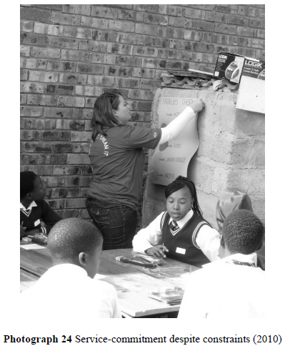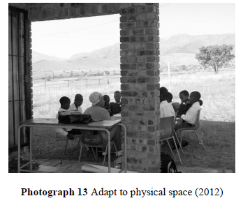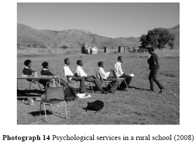 The recollections of educational psychology professionals reflect them feeling energised by insight that they were equipped to provide educational psychology services in a challenging rural school ecology - irrespective of the constraints in a rural school, as portrayed in Photographs 13 and 14. A female 2007 ASL-student stated: