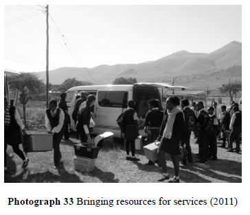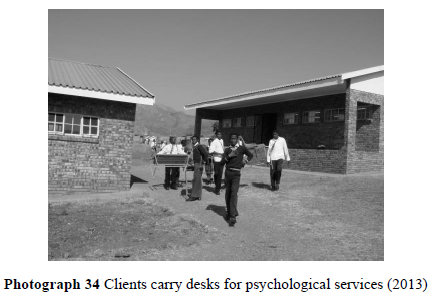 Participants were exposed to the challenges of limited resources (physical, financial, services) in a rural school - Photographs 33 and 34. Given the resources constraints, distance to services and high levels of poverty and unemployment in school-community households, one participant appeared concerned about a lack of professional efficacy when providing educational psychology services in a remote school: