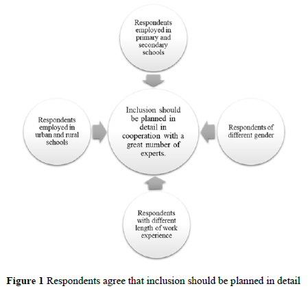 Inclusion should be planned in detail in cooperation with a great number of experts. The statistically significant difference is noticeable in four out of ten tested statements.