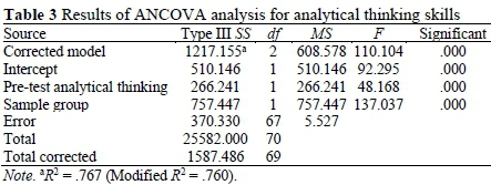 Result of ANCOVA Test Score for Analytical Thinking Skill