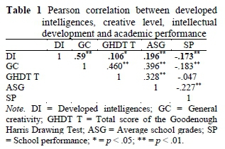 Keywords: creative development; intellectual maturity; multiple intelligences; school performance