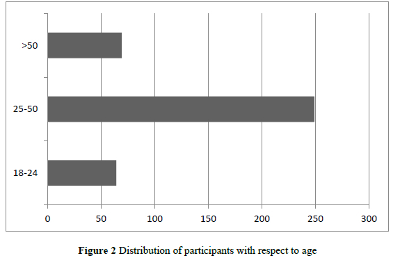 Table 1 indicates that the number of male participants were more than female participants (ratio of 60:40). Figure 2 indicates that most participants were between 25 and 50 years old (65%), followed by participants who were older than 50 years (18%). Fewer participants were between 18 and 24 years (16%) old. Table 1 also provides details regarding the distribution of the participants based on the classes that they taught. The majority of participants taught at basic or elementary school (55%) followed by high school (22.5%) and university (22.5%). The distribution with regard to experience reveals that the greater number of participants had between 1 and 10 years' teaching experience. About 35% of the participants had between 11 and 20 years' experience with about 25% of the participants who had more than 20 years' experience. The teachers were required to answer Yes or No to the questions on their beliefs.