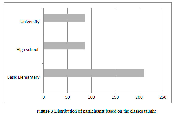 The first part of the results focus on the distribution of the participants based on age, gender, level of experiences and classes taught. The details of the distribution are indicated in Table 1.