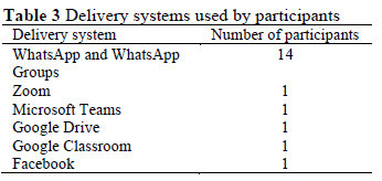 The responses to a question about the digital technology delivery systems used by the school or participants for delivery of lessons and/or content (B.2) are presented in Table 3.