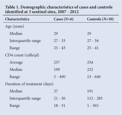 RESULTS: Six SJS cases were identified and 30 controls selected. The median age of both cases and controls was 29 years and the average CD4 counts were 237 and 234 cells/