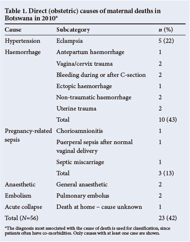 BACKGROUND: In Botswana the maternal mortality ratio in 2010 was 163 per 100 000 live births. It is a priority to reduce this ratio to meet Millennium Development Goal 5 target of 21 per 100 000 live births.