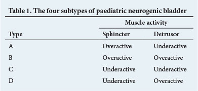 A neurogenic bladder can be defined as a dysfunctinal urinary bladder caused by disease of the central nervous system or peripheral nerves involved in the control of micturition (urination). In pathophysiological terms, a neurogenic bladder is caused by a spinal reflex arc that occurs when the bladder becomes autonomous from higher centres.!1' Paediatric neurogenic bladder dysfunction is most commonly caused by a congenital neural tube defect (NTD), such as myelomeningocele (MMC) or another form of tethered spinal cord. Alternatively, it can be the result of traumatic spinal cord injury, transverse myelitis or anorectal malformation. The standard conservative management of paediatric neurogenic bladder comprises clean intermittent catheterisation and oral anticholinergic medication. This article covers the available literature on the ideal assessment of and contemporary treatment options for this vulnerable group of children.