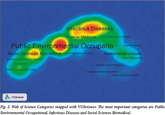 Finally, VOSviewer was used to map the Web of Science Categories (Fig. 2). The most important categories were Public, Environmental and Occupational Health, Infectious Diseases and Social Sciences Biomedical.