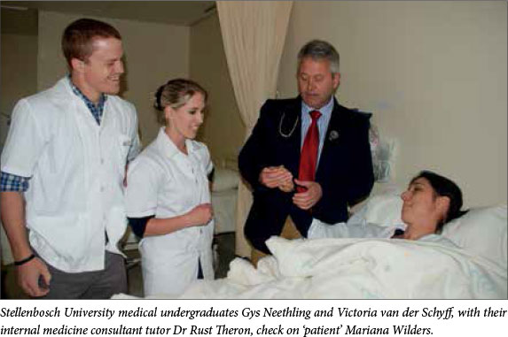 The partnership, enthusiastically backed by the Western Cape health department, saw 32 Matie medical undergraduates each spending a month at the Durban-ville Mediclinic in an internal medicine (IM) rotation during 2014, supervised by locals: radiologist Dr Rene Truter and IM specialist Dr Rust Theron. All the private specialists (who volunteered their time) underwent a special short course at the Stellenbosch University Faculty of Medicine and Health Sciences (FMHS) to 'ensure they would optimally transfer the right skills and knowledge' to their young charges. From next year the plan is to put 140 Matie medical undergraduates through the four Mediclinic hospitals in the northern suburbs (adding Cape Gate, Louis Leipoldt and Panorama hospitals to the list) via a 'memorandum of agreement' signed by the two contracting parties. According to Prof. Marietjie de Villiers, Deputy Dean of Education at the FHMS, this is not the first time the private sector has contributed to the training of medical undergraduates - but the 'scale and standardisation' of the current project is a major departure from the historical norm.