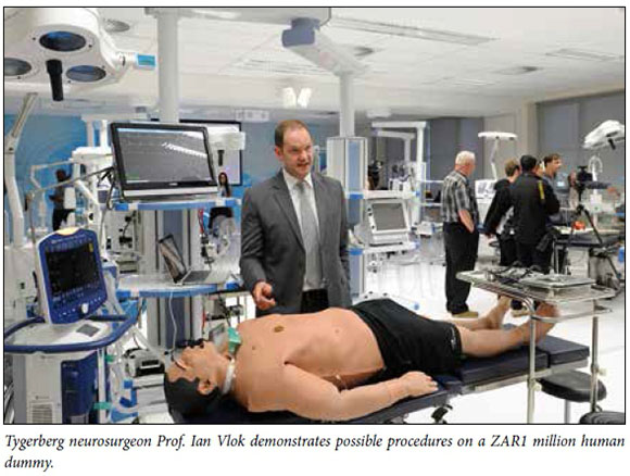 Vlok leads the three-man neurosurgical team at Tygerberg Hospital that initiated the collaboration with sponsor Medtronic, a top global surgical equipment supplier. Medtronic's MD for Africa, Mr Peter Fuller, said the ZAR120 million equipment costs would be 'amortised' over the long term. Vlok said specialist training had always demanded a delicate balance between gaining surgical experience and not putting patients' health at risk in order to do so. On 26 July, just 6 days after the launch, 40 international neurosurgeons converged on the laboratory to conduct intensive training sessions that included the most advanced keyhole surgery, showcasing equipment ranging from ZARlmillion human dummies able to replicate human functions and disease symptoms to endoscopes, high-definition surgical microscopes, image-guided navigation equipment and surgery-enhancing computed tomography scanners.