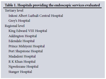 METHODS. A cross-sectional study was performed using a questionnaire completed by the clinical heads of endoscopy units in the public hospitals in KZN.