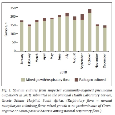 To the Editor: The clinical relevance of lower-respiratory tract (LRT) specimens remains debatable. While a positive blood or pleural fluid culture provides a definitive cause, an organism cultured from a respiratory specimen is not definitive proof of an aetiological agent. Many bacterial species are normal flora or colonisers of the respiratory tract; therefore, routine use of sputum cultures, except for suspected Mycobacterium tuberculosis (TB), is not endorsed. Notably, the South African (SA) guideline for the management of community-acquired pneumonia (CAP) in adults and the American Thoracic Society/Infectious Diseases Society of America do not recommend the submission of a sputum sample in outpatients.[1,2]
