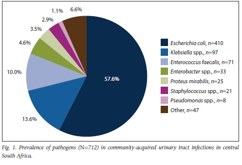 Causative pathogens and antibiotic resistance in community-acquired urinary tract infections in central South Africa