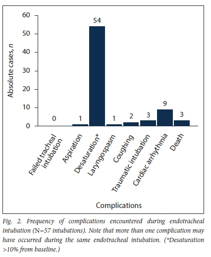 CONCLUSIONS. The study provides valuable insight into the resources used by clinicians and complications encountered when endotracheal intubations and/or extubations were performed. Data from this study may be used to guide future clinical practice and research, especially in resource-limited settings.