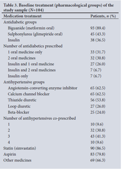 Data were collected at only one PHC facility, and the study findings therefore lack generalisability. The absence of a control group and the lack of an independent review of the pharmacist's intervention to make comparative assessments do not enable conclusive findings. Owing to the small sample size of the prescribers (n=4) who participated in the pharmacist-led intervention, conclusions regarding prescriber uptake of the intervention cannot be based on the responses of the prescribers, despite the fact that the patient folder sample and number of responses were adequate. The study can therefore only be regarded as an audit of pharmacist-identified prescriber practices in the population of 104 stable patients with type 2 DM (compared with evidence-based STGs for the management of these patients).