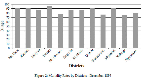 This article extends this analysis to the Transkeian Territories in the Eastern Cape.7 It assesses the impact of the epizootic and the various survival and recovery strategies that Africans deployed to cope with the challenges the cattle disease posed. Especially, it investigates the influence of the epizootic on labour migrancy in this vast African territory. The findings confirm those emerging from Lesotho. As the isiXhosa sub-title and epic poem suggest, the rinderpest was a massive calamity on an unprecedented scale. But African societies in the Transkeian Territories survived the effects of this most devastating epizootic by reacting energetically to the crisis. Similar to the pattern that unfolded in Lesotho, the rinderpest did not dramatically change the levels of migrancy.