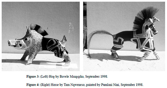 * This paper is related to a wider study, by the same authors, of the e-Hala clay modelling tradition. For the historical and social context of modelling in the area readers are referred to '"Shaping in dull, dead earth their dreams of riches and beauty": Clay Modelling at e-Hala and Hogsback in the Eastern Cape, South Africa', Journal of Southern African Studies, vol. 27(1), 2001, 137-161. We have accumulated many debts of gratitude, obvious from the footnotes. We would particularly like to thank Manton Hirst, of the Amathole Museum, King William's Town, upon whose work we have relied in one section of this paper.