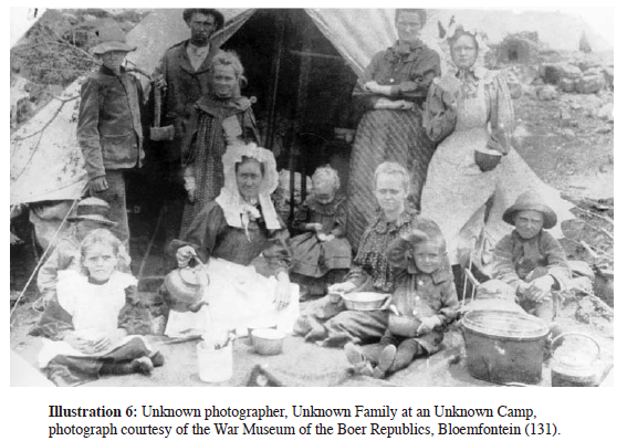 2 Louis Changuion, Frik Jacobs and Paul Alberts, Suffering of War (Bloemfontein: War Museum of the Boer Republics, 2003: for Illustrations 1-8, the page number from Suffering of War is indicated in parenthesis). The War Museum probably has the largest collection of concentration camp (and war) photographs, but there are other collections in the Free State Archives, also at Bloemfontein, the Howick Museum, KwaZulu-Natal, the National Archives and the National Cultural History Museum, both in Pretoria, and in the Milner Papers, London. I am grateful to Elizabeth van Heyningen for bringing images from these collections to my attention, and for her comments on this paper.