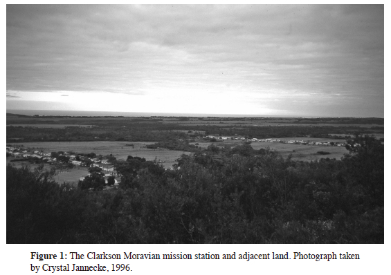 A group calling itself the Tsitsikamma 'Fingo/Mfengu' community lodged a land claim against the Moravian Church in 1991. They demanded the Church's return of the Clarkson Moravian Mission land held since the 1830s on behalf of and in trust for the 'Fingoes'. In effect, the claim recalled a land tenure arrangement set in place by British colonial authorities during the 1800s. The Clarkson land restitution case is indeed special for there is no history of forced removals from the mission land. The State is as a result not the apparent transgressor. The claiming 'Fingo/Mfengu' communities had resided on land adjacent to Clarkson prior to being dispossessed of their land by the State in 1977 and resettled at Elukhanyweni in the Keiskammahoek district of the Ciskei. The mission station residents, however, remained in possession of land in the Tsitsikamma.