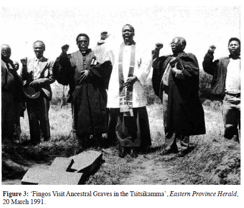 The TEA (Fingo) began a successful national media campaign to strengthen its position in local negotiations with the Moravian Church. Selected elements from the Clarkson Deed of Grant highlighted that the mission station land was held in trust by the Moravian Church for the 'Fingo/Mfengu' and their descendents.47In these accounts the corresponding ambiguity of historical rights in the Clarkson land was not made public, nor investigated. As early as 1991 the TEA (Fingo) announced that 'as yet the Fingo Exile Association has not targeted the Church. Its primary aim is to recover land Fingoes occupied until the end of 1977'. Further media coverage cited the Moravians as running 'a mission at Clarkson on 2700 ha . on behalf of and in trust for the Fingoes'.48 The report continued by stating that 'the dilemma the Church faces is causing concern ... efforts are being made to find the original deed'.49 Soon hereafter an article appeared in a local newspaper stating that 'for their part the Mfengu might accept a compromise involving the return of 2700 ha of land, taken over by the Moravian Church in the late 1950s in obscure circumstances'.50 Such descriptions overlooked the independence movement within the South African Moravian Mission Society from the mid-1800s, which culminated in the establishment of an independent indigenous Moravian Church. The Moravian Church overlooked its rich history of being an emerging independent indigenous church during the colonial and apartheid era. In response, the Church affirmed its opposition to apartheid and pledged its 'financial and moral' support for the return of the Tsitsikamma 'Fingo/Mfengu'.51