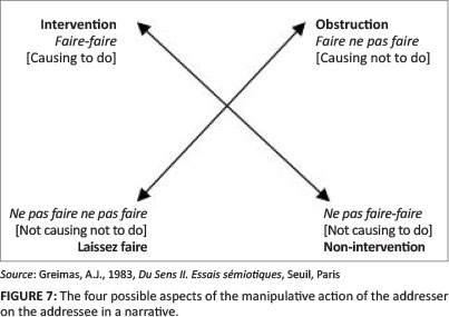 Intervention, obstruction, non-intervention and laissezfaire (non-obstruction) characterise the action of the addresser.