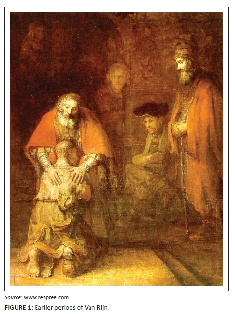 Perhaps, one of the most striking and classic, aesthetical depictions of a homecoming is still Rembrandt van Rijn's portrayal of the return of the prodigal son (Munz 1954:148; see also my description in Cilliers 2012:149).3 In this painting, the essence of welcoming love is concentrated in the hands of the father. While the old man who thought his son was lost to him forever, presses him against his breast, his sadness is transformed into deep gratitude. The prodigal son puts his head against the heart of the father, his own heart beating with sorrow and repentance, but also the relief of being home again. With some imagination, one can hear the unifying of heartbeats, after being separated for such a long time: