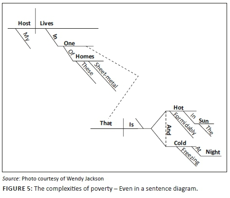 This is actually a question of ethics. One aspect of my research that I can 'frame' quickly is that of a focus on poverty. Moreover, as a white Western feminist who is not living in poverty, one of the first of many ethical issues that surface in this kind of research is the objectification of the poor or disenfranchised. How, for example, do I show pictures of rural Rwanda, Zimbabwe, Malawi, Cameroon, Namibia or South Africa to my own communities, including you as readers, without immediately objectifying them? How do I tell stories and show pictures of children living and dying in poverty when I do not have the systemic resources to change anything? Our involvement with this topic is a complex one methodologically, contextually, intellectually and even emotionally, to which we must be committed to respect, value and honour (see Figure 5 and Figure 6).