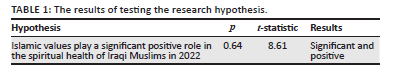 Table 1 displays the relationships between the research variables based on the p-value and t-statistic in LISREL. Given that the p-value was positive and the t-statistic was higher than 1.96, the Islamic values could play a significant positive role in the spiritual health of Iraqi Muslims in 2022.