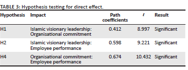 H3: The effect of Islamic visionary leadership on employee performance through organisational commitment