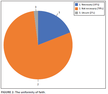When the respondents are specifically asked apropos of religious uniformity, the majority asserts that humanity does not have to be uniformed in terms of faith (see Figure 2). Humans have a free space to choose and hold different beliefs from one another. The majority affirms that religious uniformity is not necessary.