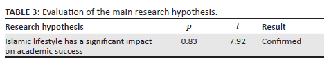 CONTRIBUTION: Amongst the various factors that can influence students' academic success, the current research focused on the Islamic lifestyle. The findings of the present study offered a new insight into the relationship between the Islamic lifestyle and academic success in Russia