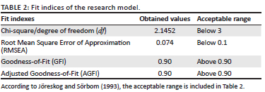 Further, Table 2 indicates the Fit indices in Linear Structural Relations (LISREL).