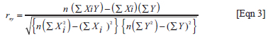 The correlation coefficient is obtained using the following formula in Equation 3: