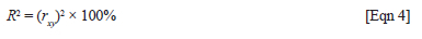 The coefficient of determination is obtained using the following formula in Equation 4: