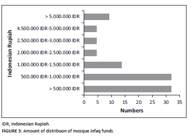 Firstly, a study on increasing infaq funds during the COVID-19 pandemic. The existence of a pandemic has a significant impact on the income of infaq funds. Infaq fund managers, including mosques and amil institutions, must be more active and innovative in fundraising. For example, through campaigns in online media (Hudaefi & Beik 2021) and counselling (Uyun 2015). During the COVID-19 pandemic, people tended to use technology platforms more in distributing infaq funds (Aji et al. 2021). In addition, the 'Friday Thousand' programme carried out by the community every Friday also significantly contributes to collecting infaq funds (Khaerunisa, Yayuli & Febriandika 2021). With this infaq instrument, the government can be assisted in accelerating the community's economic recovery from the crisis (Ascarya 2021).