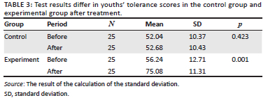 In the study, 25 youths in the control group were not given treatment, while 25 youths in the experimental group were given treatment in the form of the OMG application. An overview of the use of OMG applications relating to the level of religious tolerance in the experimental and control groups, can be seen in Table 3.