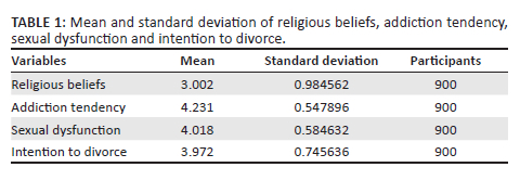 Religious beliefs, addiction tendency, sexual dysfunction and intention to divorce among Muslim couples