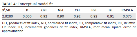 In order to evaluate the proposed model, structural equation modelling (SEM) was used. To determine the adequacy of the proposed model's fit with the data, a combination of fit indices, including the chi-square value (X2), normalised chi-square index (X2/df), goodness-of-fit index (GFI), normalised fit index (NFI), comparative fit index (CFI), incremental goodness-of-fit index (IFI), and root mean square error of approximation (RMSEA) were employed. The fit of the proposed model was accordingly analysed via these data. The general fit indices of the proposed model are provided in Table 4.