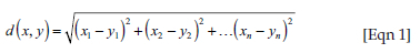 In Where, x = (x1, x2…, xn) and y = (y1, y2…, yn) are the two points of the calculated distance. xn and yn represent the numbers of two sample points, respectively.