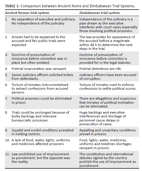 A comparison between ancient Roman trial system and Zimbabwean trial system