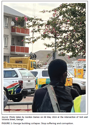 A case in point is the popular tourist destination in the Garden Route of South Africa, the collapse of an apartment building in George inflicted agony and the deaths of 24 labourers - 28 were still unaccountable at the time of writing this article. This horrific event exposes the indiscriminative, rapid and massive land developments with a devastating impact on the lives of local people, the environment and nature (The Herald 2024). Across the Western Cape, land and property swaps for wealthy whites denying poor, vulnerable and marginalised communities the right to life in secure housing and living conditions, are a reminder of forced removals during apartheid and a new form of economic apartheid (Daniels 2024), see Figure 1.