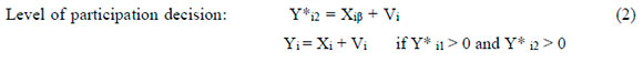 Zi and Xi are vectors of explanatory variables relating to participation and level of participation, respectively.
