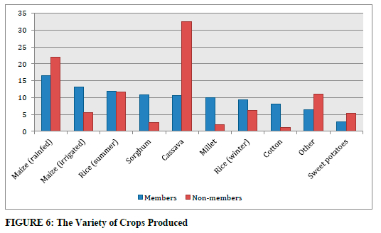 Members of farmers' associative mechanisms mostly plant maize (rainfed and irrigated) and rice in the summertime. Interestingly, even though these are the main crops that are produced, members of farmers' associative mechanisms also plant various other crops, such as sorghum, cassava, and millet (FIGURE 6).