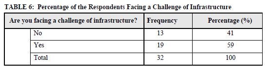 Farm infrastructure plays a critical role in the health and productivity of small-scale sheep farming systems. Good infrastructure may reduce the risk of diseases, improve production efficiency and increase sheep productivity. The study's results demonstrated that infrastructure is also a challenge small-scale sheep farmers face. The results show that 59% of the respondents face infrastructure problems, while 41% do not (Table 6). This agrees with the findings of Van der Merwe, Van Rooyen and Van Rooyen (2008), who reported that in the Hantam Karoo, there is a lack of infrastructure due to low income in the farms and unfavourable conditions. Benseler (2003) further reported that in the Hantam Karoo, there is a problem with poor infrastructure conditions and a lack of responsibility to maintain the infrastructure. Inadequate infrastructure in terms of fencing has a higher incidence of predator movement along the fence line and hole utilisation by medium and small predators. Good infrastructure in terms of fences significantly reduces predator movement from different farms. In addition, adequate infrastructure facilitates agricultural inputs and outputs to the market (Ntulie & Fourie, 2021). Poor infrastructure in the Hantam Karoo may be attributed to the municipalities' lack of management and maintenance of commonage land. This indicates that this challenge needs to be addressed as soon as possible. To address the challenges of poor infrastructure on a farm, it's important to identify specific areas that need improvement. Once the specific challenges have been identified, the next step is to develop a plan to address them. This may involve improving existing infrastructure, such as repairing fences or investing in new infrastructure.