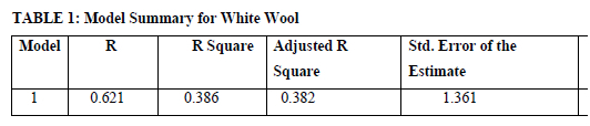 The summary of the results from the statistical analysis for White wool is illustrated in Table 4. As depicted in Table 3, staple length, fibre diameter and clean yield contributed statistically significantly to the determination of White wool price, except for vegetable matter.