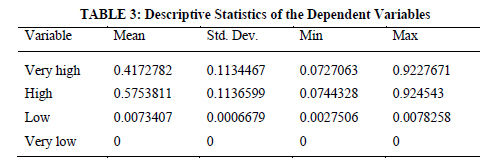 Furthermore, the marginal effect of the model is estimated and used for result discussions, given the non-linearity and non-probabilistic nature of the coefficients. Hence, marginal effect estimates the probability of each outcome change as each explanatory variable changes (Edriss, 2019). Therefore, each dependent outcome variable (Y = 1, 2, 3, 4) would have its probability of occurrence as the independent variable changes.
