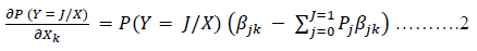 Equation (1) can only provide the direction of the effect of contextual background on choosing a particular adaptation strategy. The marginal effect is attained by distinguishing equation (1) with respect to independent variables of interest. The marginal probability for a typical independent variable was given as: