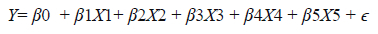 X1, X2, X3, X4, and X5 represent the perceived importance of farming, economic, extension and education, social, and policymaking factors, respectively. β0 is the intercept term, representing the constant effect on perceived attitudes. β1, β2, β3, β4, and β5 are the coefficients of X1, X2, X3, X4, and X5, respectively, indicating the impact of each independent variable on perceived attitudes. ε represents the error term.