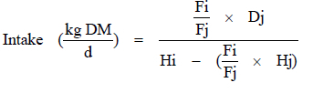 Hj = herbage concentrations of the even-chain alkane (C32).