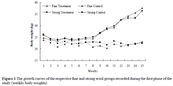 The results from this study suggest that the wool follicles of the animals of the treatment groups of both the fine and strong wool flocks became inactive and that some follicles shed their fibres. However, a most important factor is that the inactivity of the follicles was not permanent, and at the end of the second phase there were no differences in the amount of wool produced by the stressed and unstressed groups.